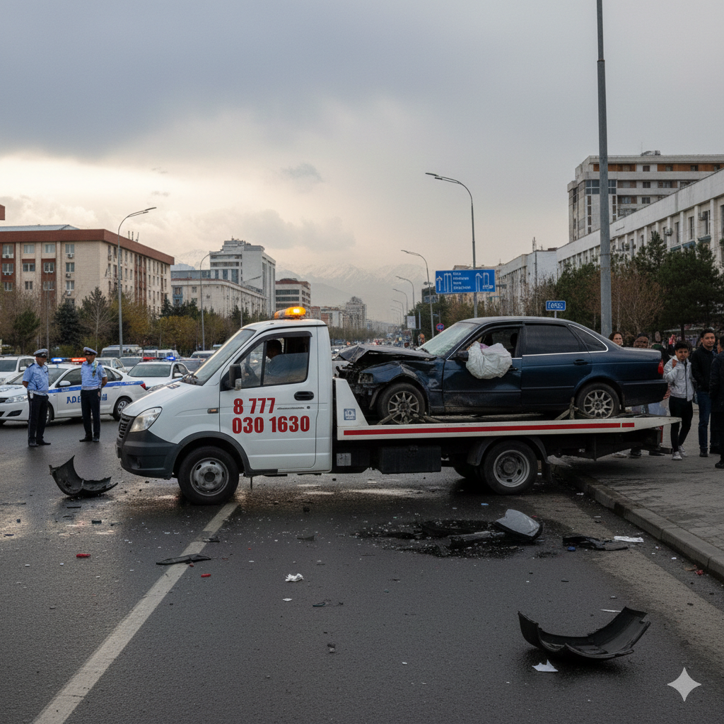 Ближайший эвакуатор выезжает к вам. Среднее время прибытия — 20–30 минут по Алматы